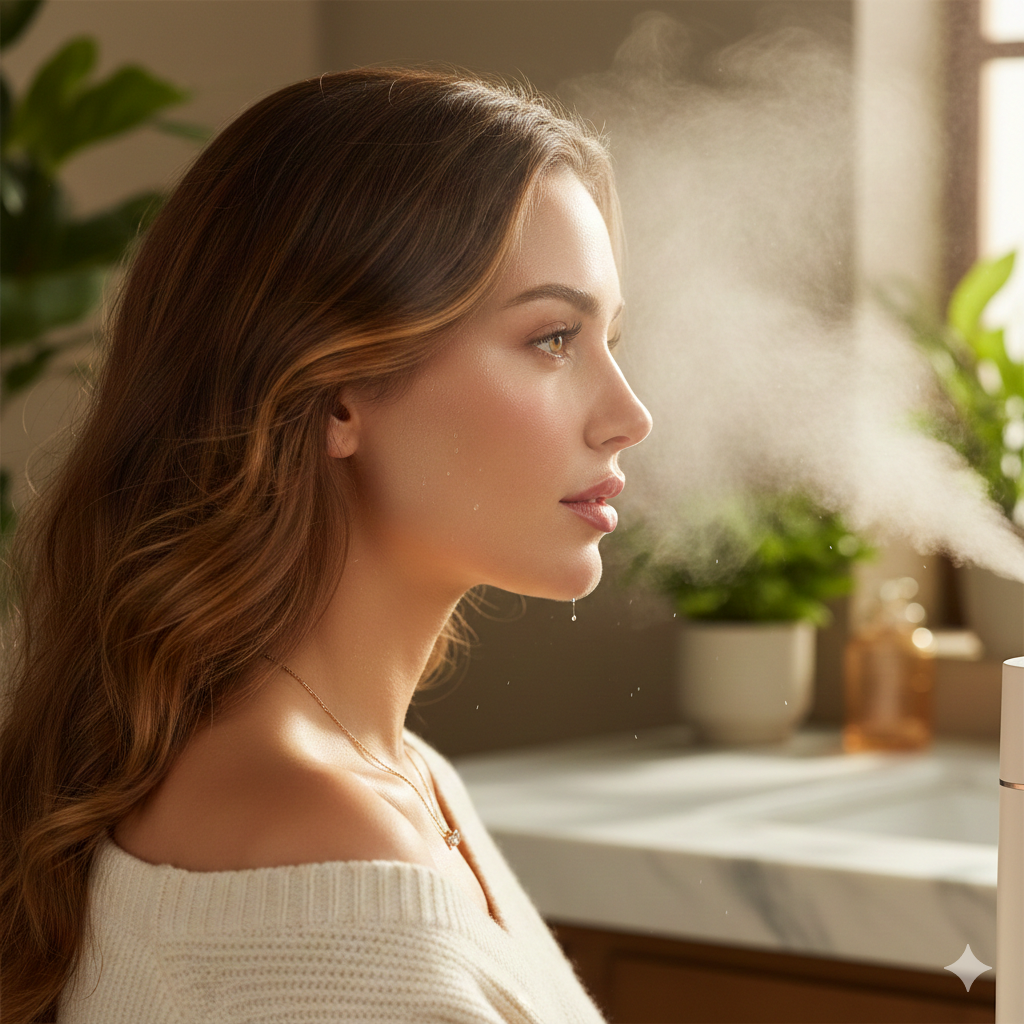 Answer 2: No, the high-frequency atomization technology creates an ultra-fine nano-mist that penetrates deep into the skin's layers rather than sitting on the surface. This allows you to hydrate and refresh your face without smudging or disturbing your makeup.